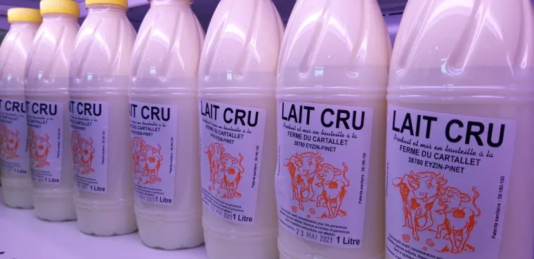 Vente de produits laitiers en provenance de l'élevage de Cyrille Mouterde, exploitant agricole à Eyzin-Pinet.